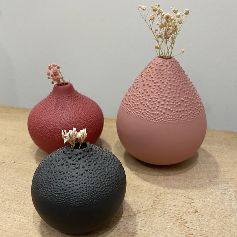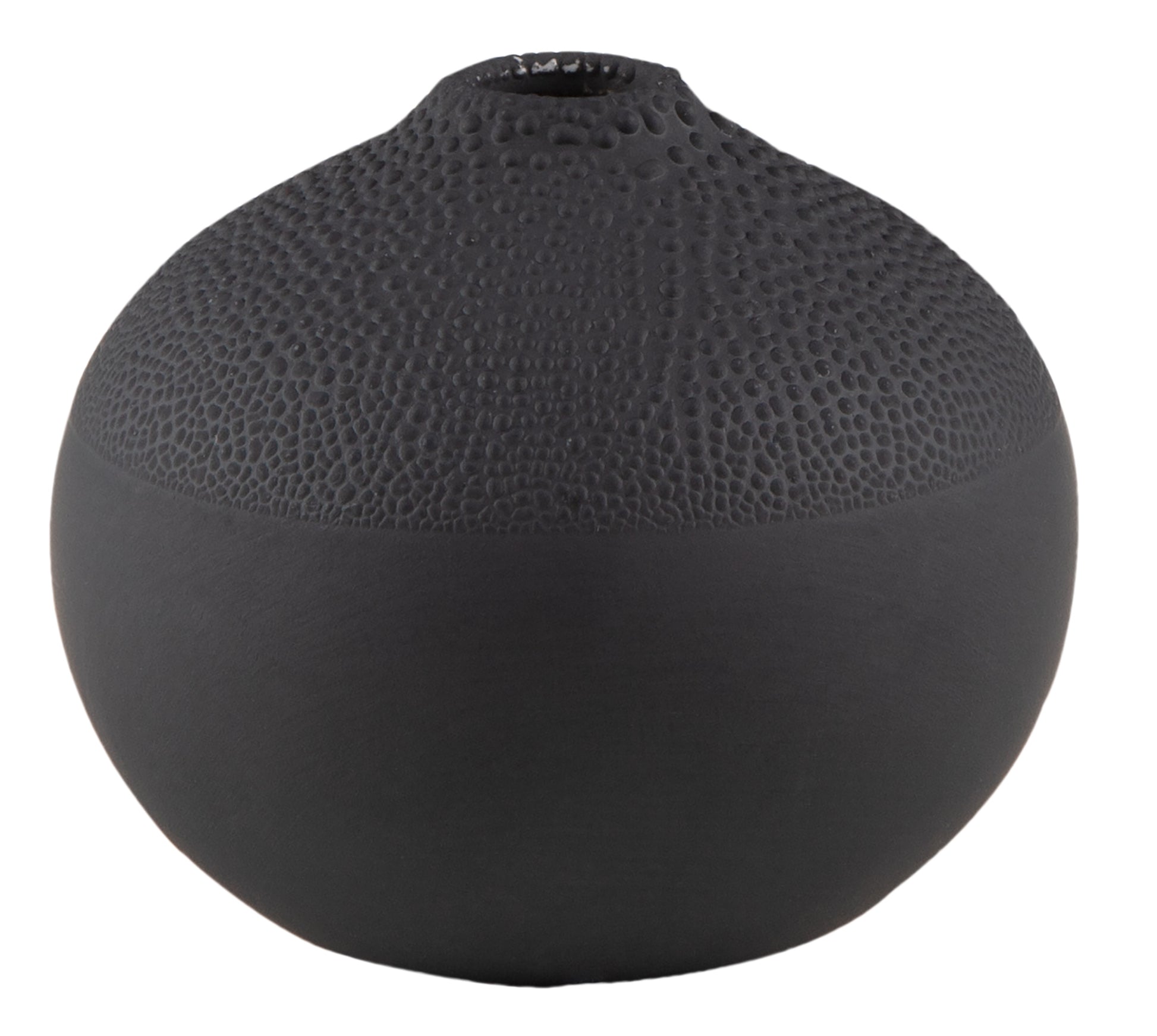 Deze porseleinen vaas met zwart parelglazuur is een streling voor het oog in elk interieur. Uitermate geschikt voor kleine droogbloemen.