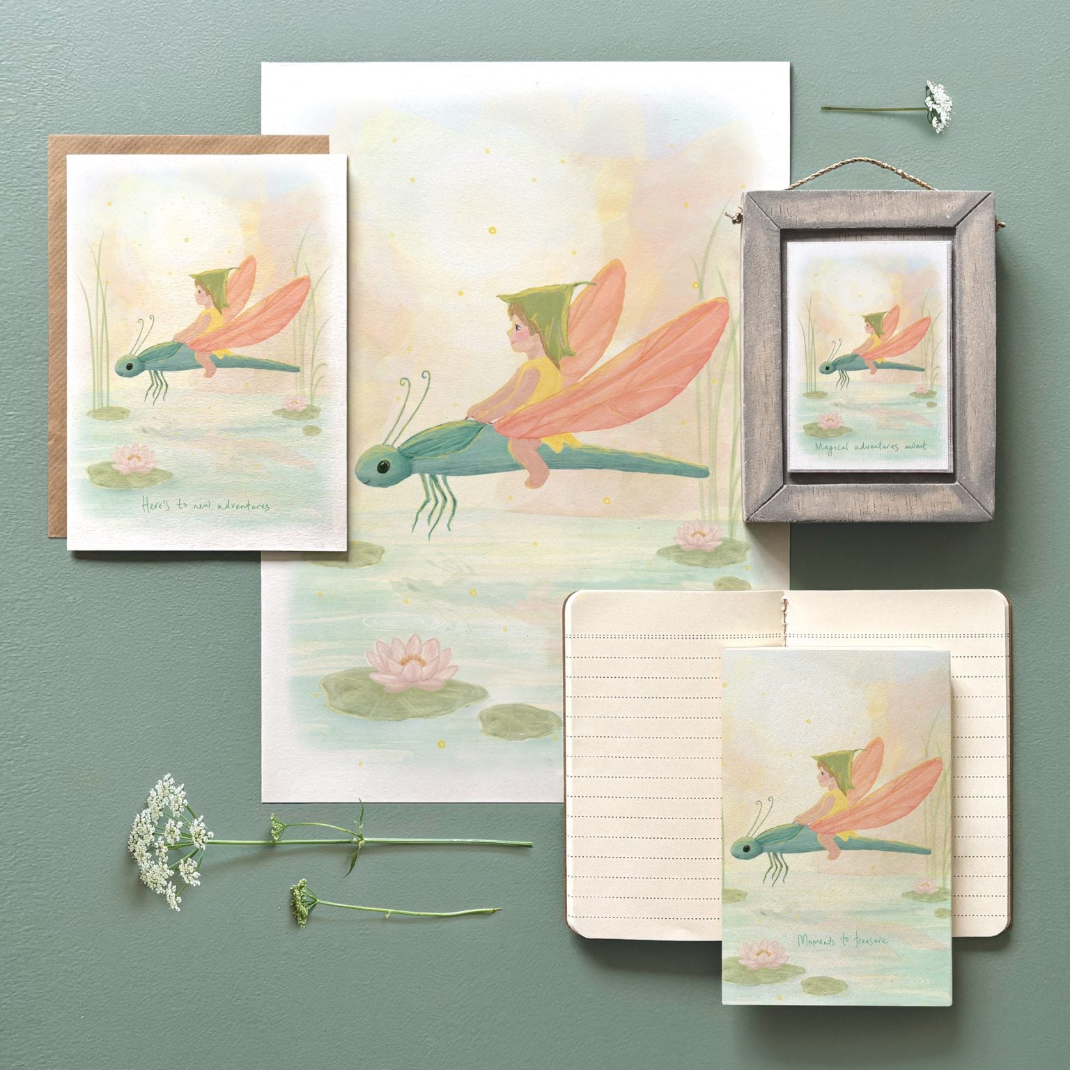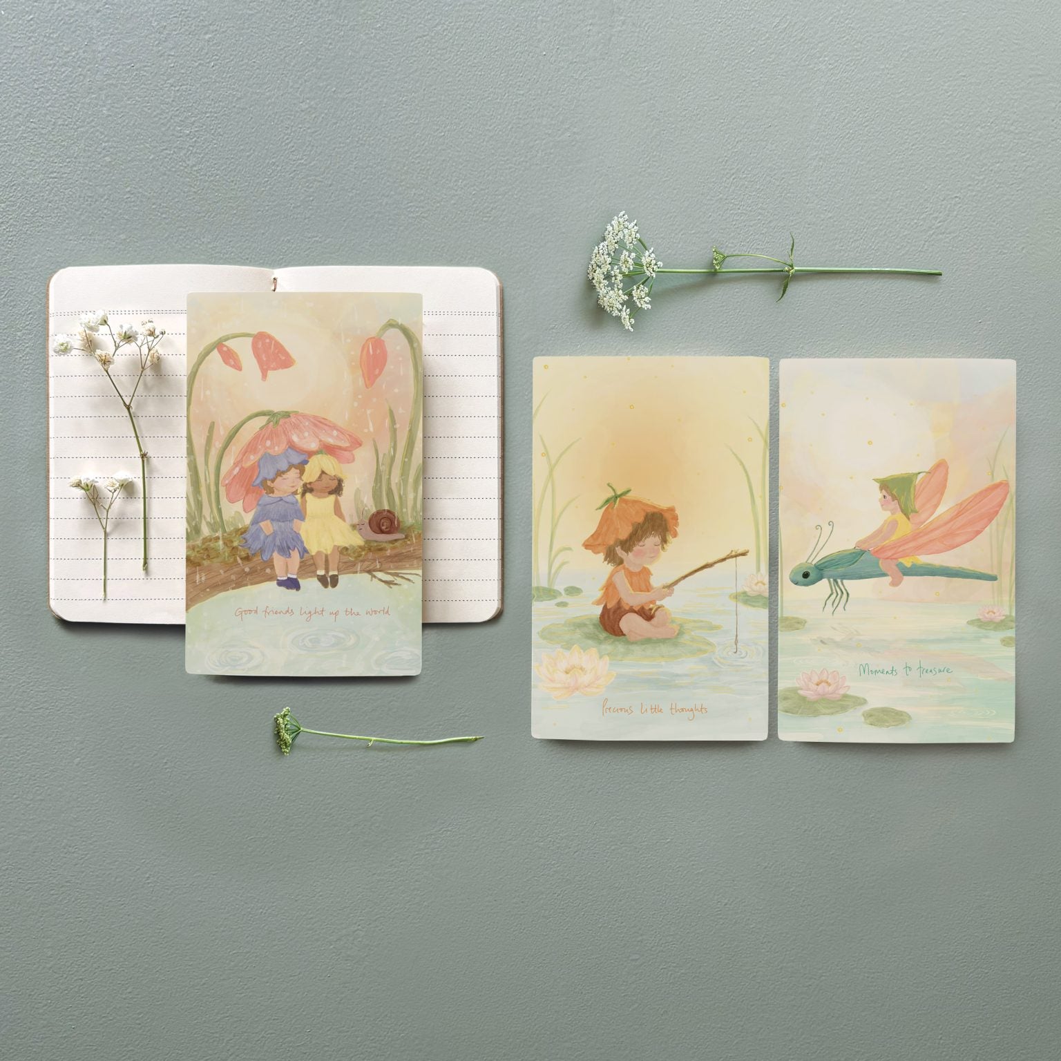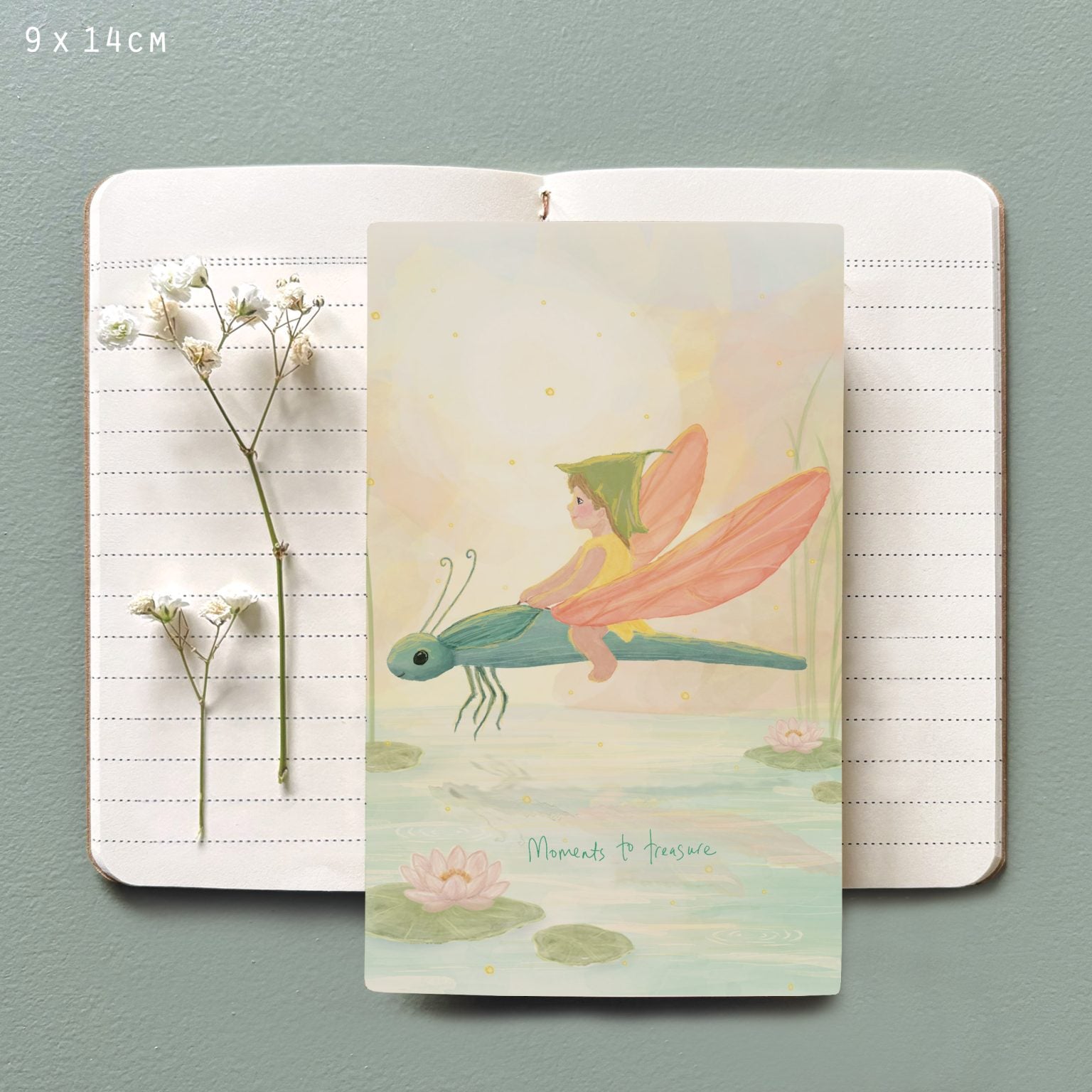 Een notitieboekje met een prachtige tekening op de kaft, waarop de tekst: 'Moments to treasure' staat. Het ideale notitieboekje om alles te noteren!