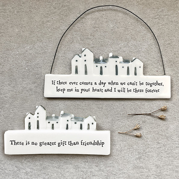 Een porsleinen beeldje met de tekst 'There is no greater gift than friendship'.