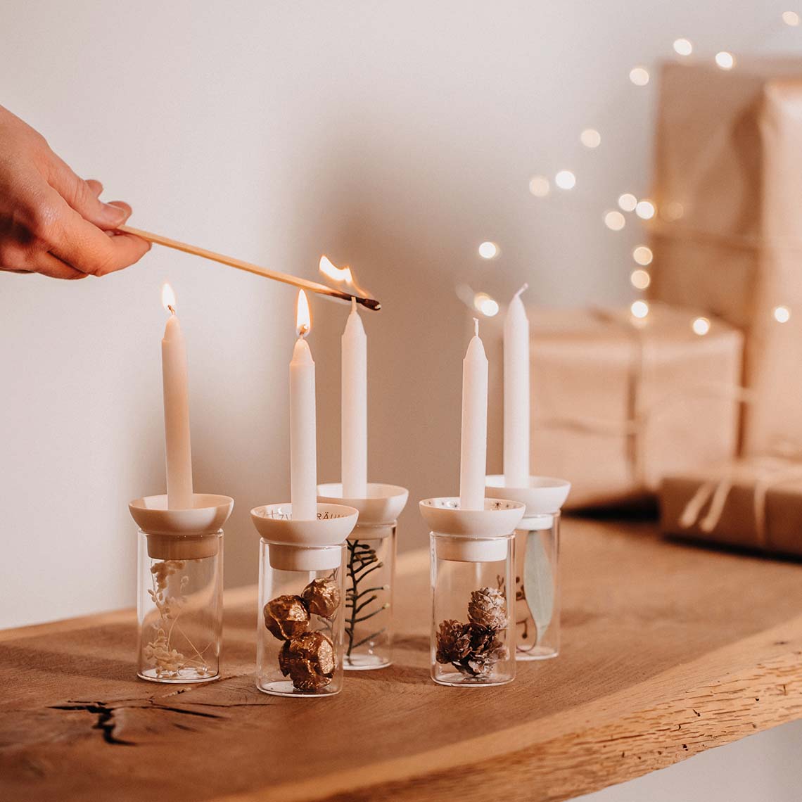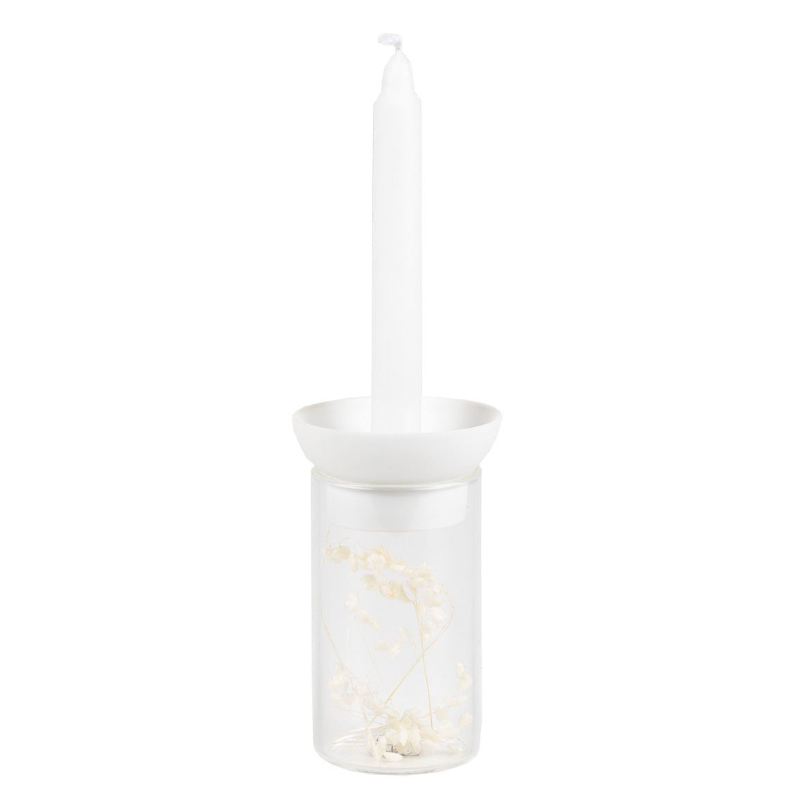 Materiaal: glazen cilinder, bijpassend porseleinen bovenblad