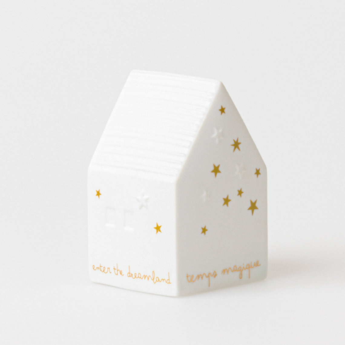 Superlief porseleinen huisje van Räder. Het huisje is gemaakt van deels geglazuurd porselein. De led verlichting werkt op 3 LR44 batterijtjes (inclusief).