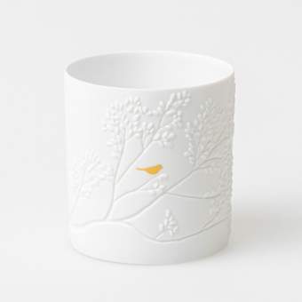 Mooie porseleinen theelichthouder met een gouden volgel als details