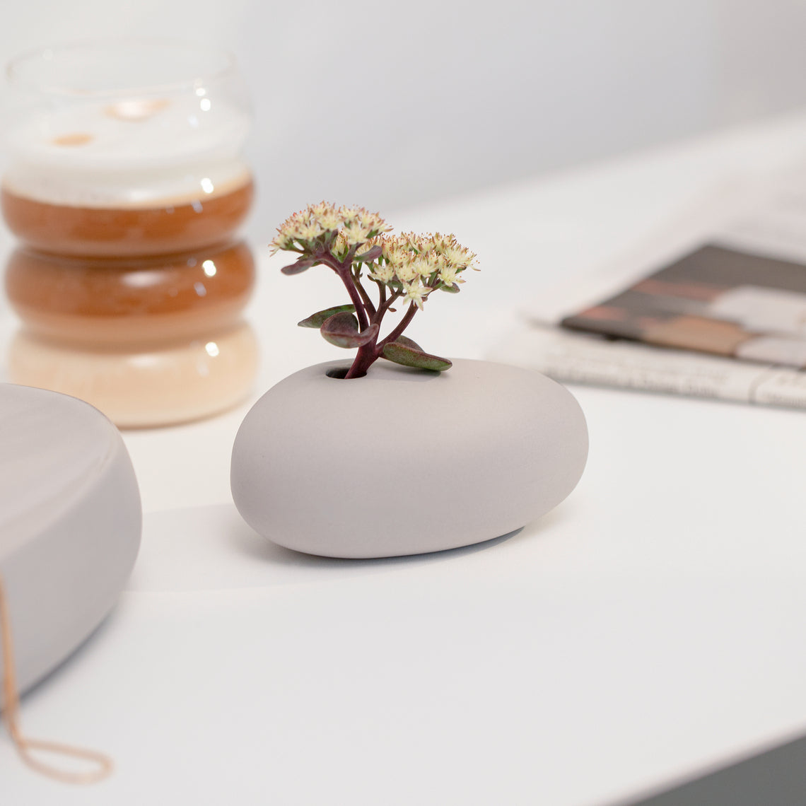 Porseleinen vaas in de vorm van een kiezel. Met dit vaasje kies je voor subtiele decoratie. Ideaal om te combineren met droogbloemen.