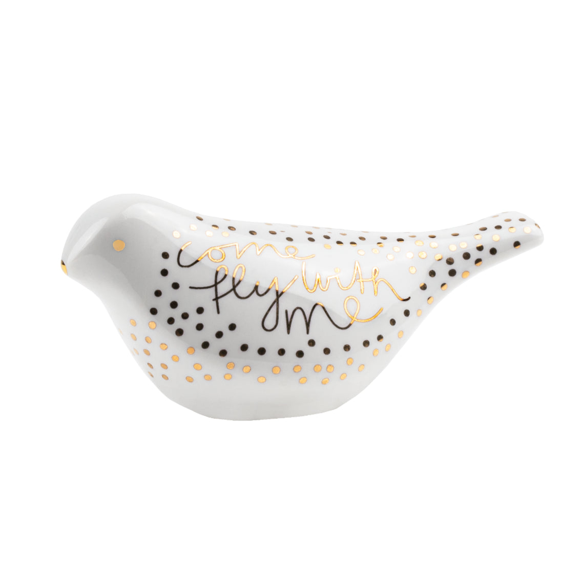 Porseleinen vogel met goudluster: Come fly with me.