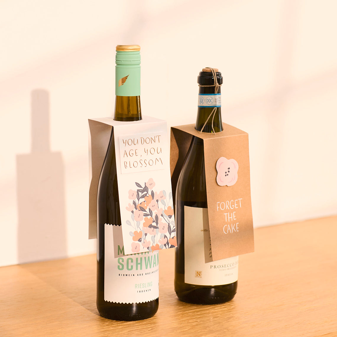 Mooie wenskaart van Räder die je rond een fles kan doen met tekst 'forget the cake'. Wat een geweldig leuk verjaardagskadootje.