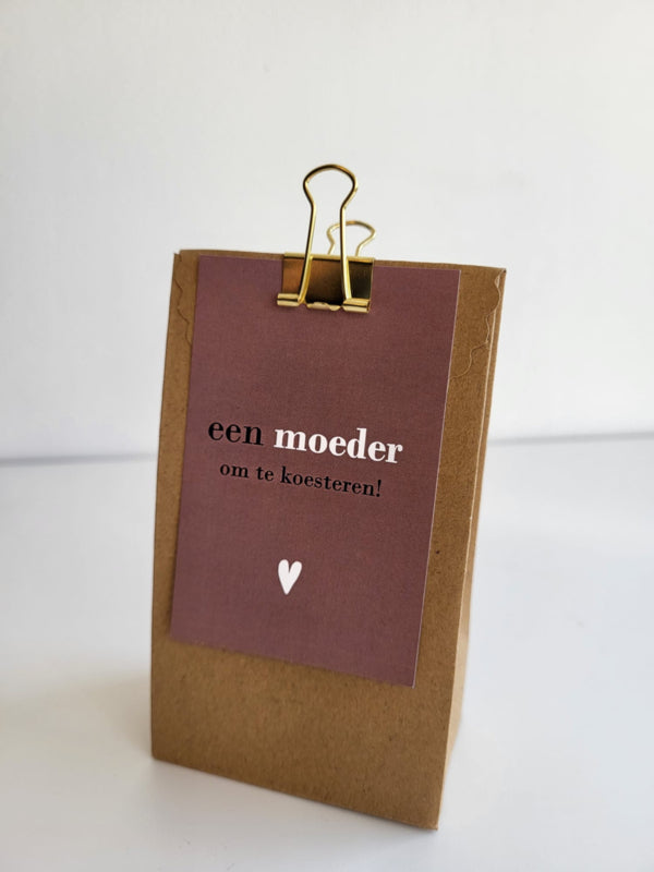 Je mama laten weten dat je aan haar denkt of haar een kleine attentie geven, dat wordt enorm gewaardeerd. Met dit leuke cadeauzakje van kraft zit je altijd goed!