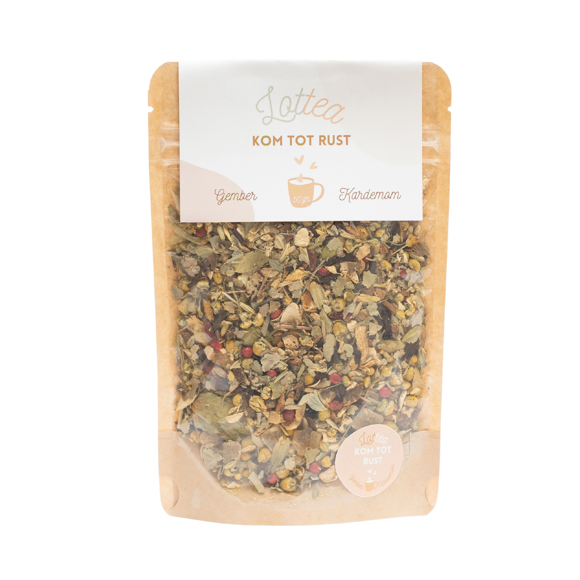 Onze Kom tot Rust thee behoort tot de categorie kruidenthee. Kruidenthee is officieel geen thee, maar een kruidenaftreksel, dat bestaat uit gedroogde kruiden. In de volksmond noemen we het echter toch gewoon thee.