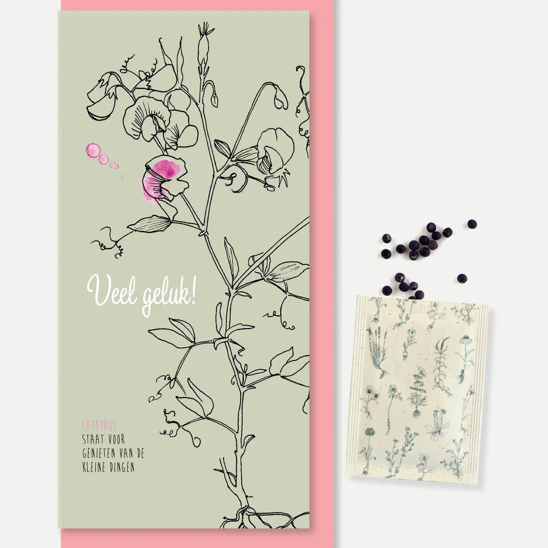 Veer & Moon Veel geluk- lange wenskaart met zadenzakje