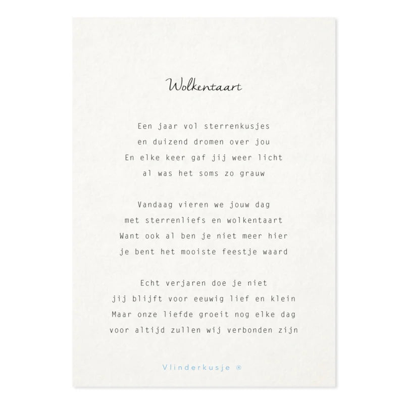Lieve posterkaarten met gedicht in A5 formaat van Vlinderkusje.