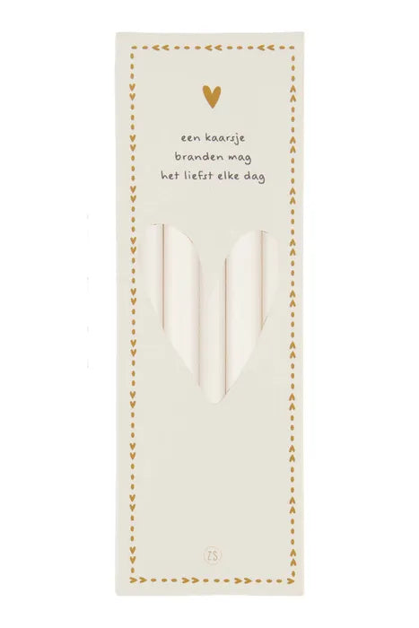 Doosje met 10 smalle kaarsjes 17cm off white.