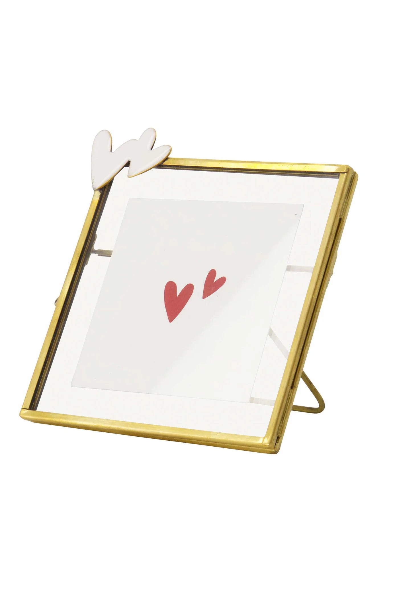 Dit Zusss fotolijstje metaal hartjes brengt een subtiele liefdevolle touch aan je woonkamer. Het fotolijstje metaal hartjes heeft een wit hartje als detail en een goudkleurige metalen omlijsting, wat zorgt voor een tijdloze en warme uitstraling. Perfect om jouw mooiste herinneringen stijlvol te tonen. Het fotolijstje past mooi tussen andere woon accessoires en creëert sfeer met een fijne basic look. Met dit fotolijstje metaal hartjes geef je je interieur dat persoonlijke accent waar je naar op zoek bent.