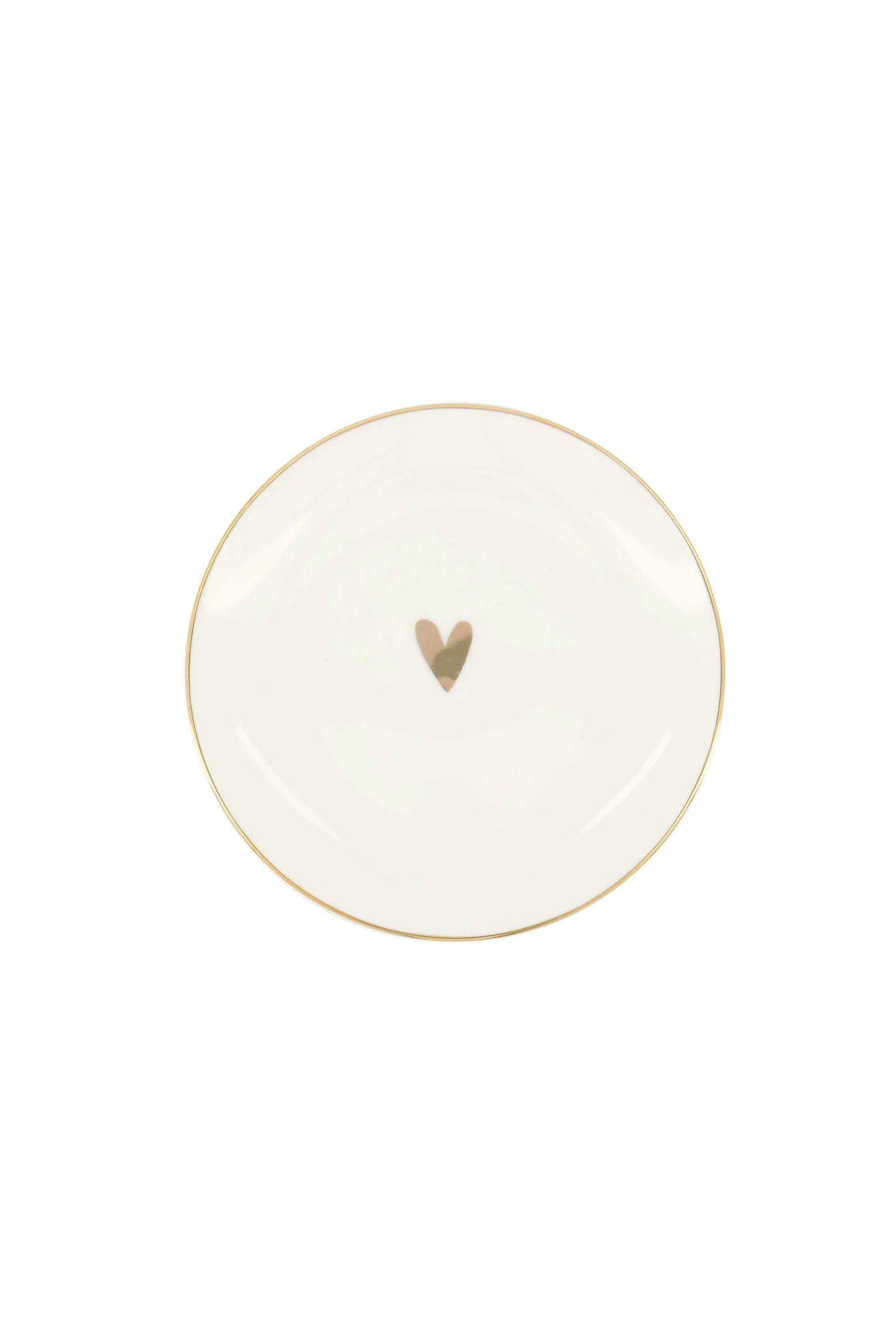 Met dit gebaksbordje van Zusss geniet je nóg meer van al dat lekkers! Het bord is wit van kleur met in het midden een goud hartje. Ook heeft het bord een gouden randje. Het bord is gemaakt van aardewerk en heeft een formaat van 14x1,5cm.