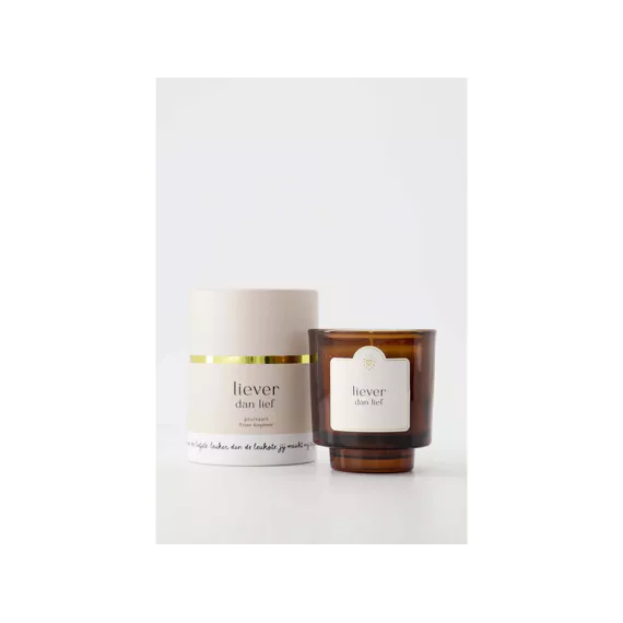 Maak van elk moment iets bijzonders met de Zusss Geurkaars Glas in Koker Liever Dan Lief in off white! Dit elegante kaarsje in glas komt in een stijlvolle koker en verspreidt een zachte, aangename geur die je interieur meteen knus maakt. Het subtiele ontwerp met de tekst ‘Liever Dan Lief’ geeft een persoonlijke en liefdevolle touch, ideaal voor op de salontafel, vensterbank of nachtkastje. Geniet van het warme licht en de fijne geur die een gezellige en hartverwarmende sfeer creëren. Een klein kaarsje dat veel sfeer en persoonlijkheid toevoegt aan je huis.