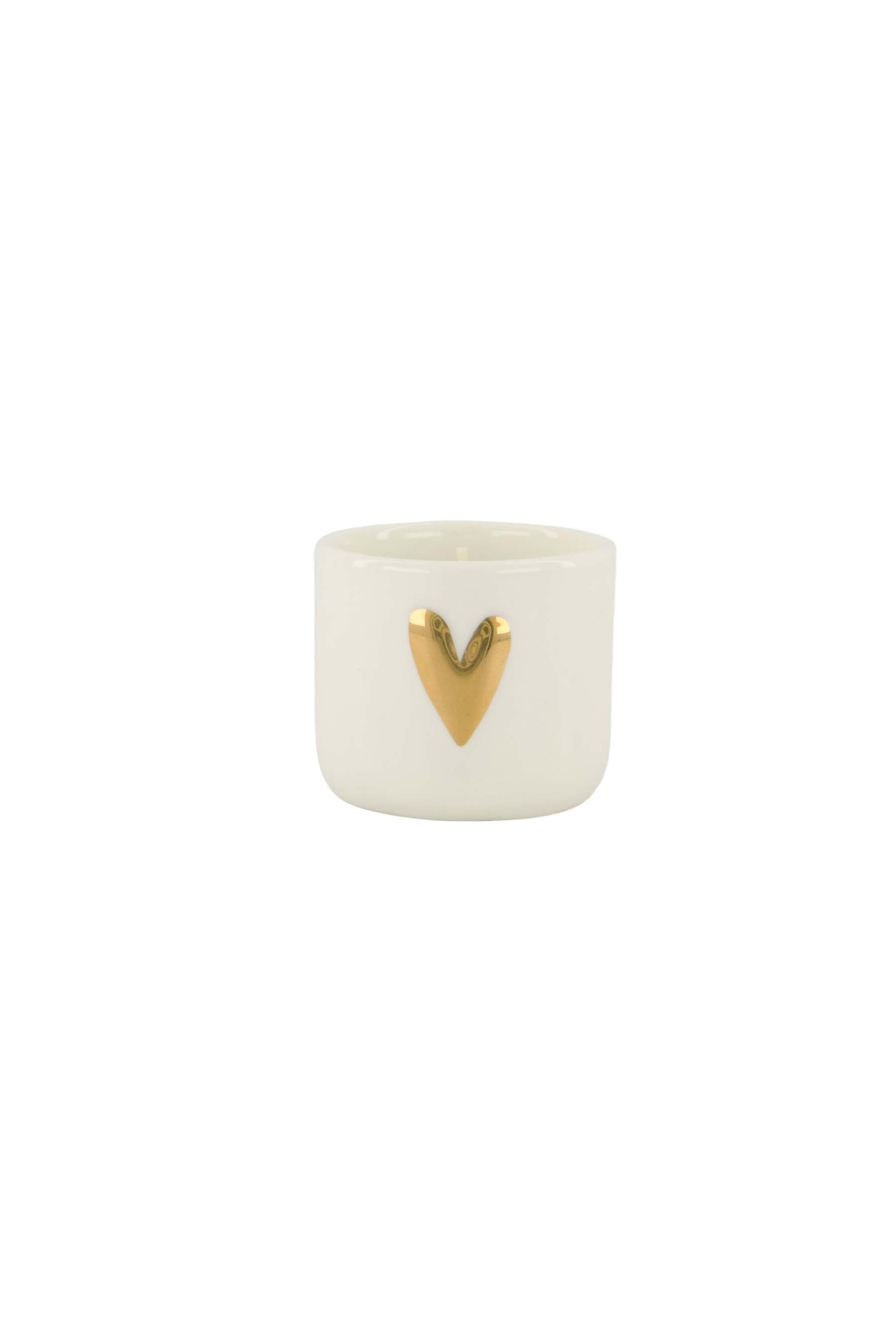 Keramische geurkaars met goudkleurig hartje in reliëf.